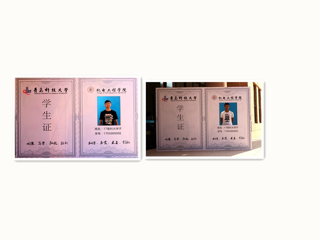 专门制作了巨型学生证可供学生拍照留念,快门按下的一刹那意味着新生身份的一种转变,即由高中生成为一名大学生,为其人生履历也增添了浓墨重彩的一笔。