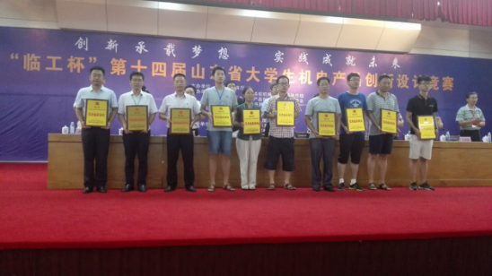 院长、山东省机电产品创新设计竞赛组委会副主任委员何燕教授带队参加比赛,并在闭幕式上代表组委会做总结发言。经过两天的激烈角逐,我校申报的68项作品中,有64项获奖,其中一等奖5项、二等奖15项,三等奖44项,获“科明奖学金”1项、“昭阳奖学金”1项。何燕、李锋、闫青、郭建章、杨化林、张卫锋、唐跃、李淑江、王宪伦、王冠中、胡德栋、田绪东等12名老师获“优秀指导教师奖”,学校获评“优秀组织单位奖”。