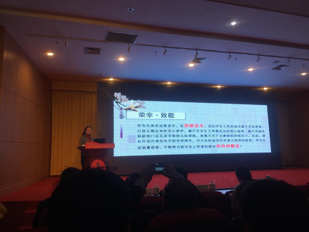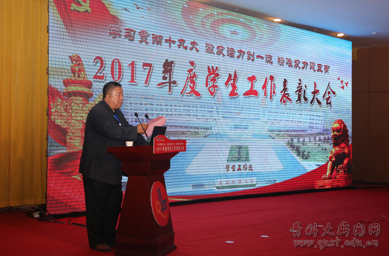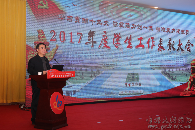 张元利公布了2017年度学生工作奖项获奖名单,并号召全体学生工作者和全体在校生认真学习和领会本次表彰大会会议精神,以学习贯彻党的十九大精神为契机,不断加强学习,努力开创我校学生工作的新局面,为学校各项事业的发展做出新贡献。