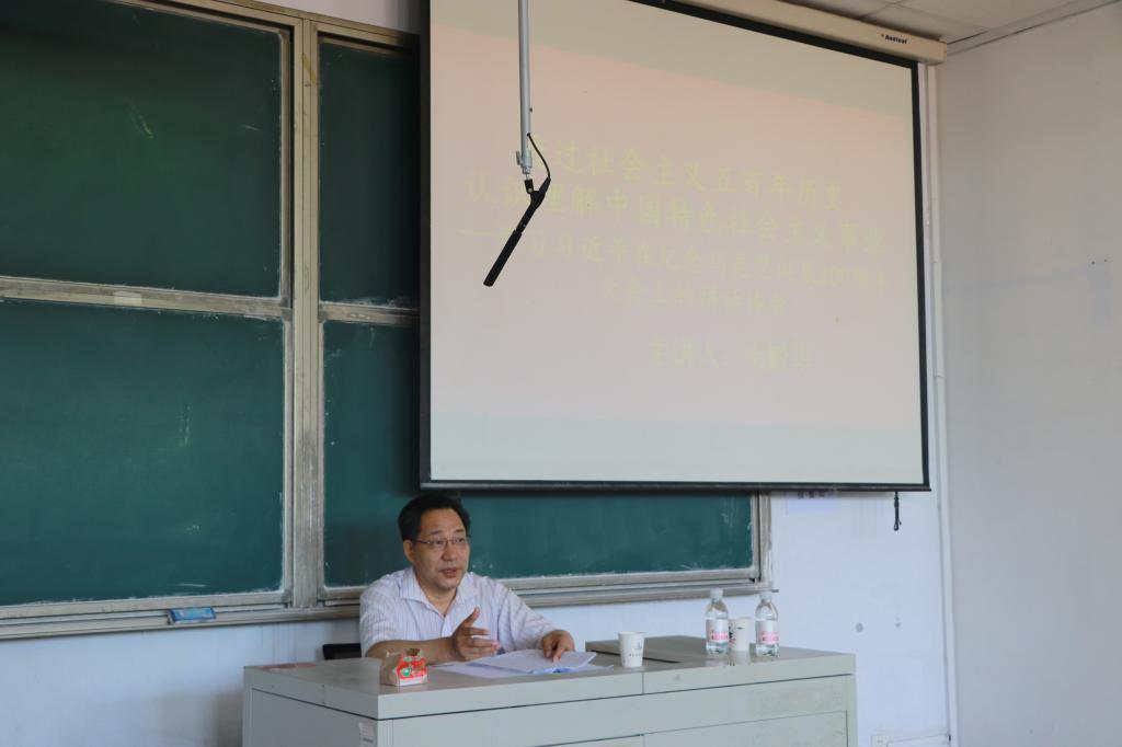 7月3日下午,党委常委、副校长韦殿华以《透过社会主义五百年历史 认识理解中国特色社会主义事业——学习习近平总书记在纪念马克思200周年诞辰大会上的讲话体会》为主题,为威廉希尔官网