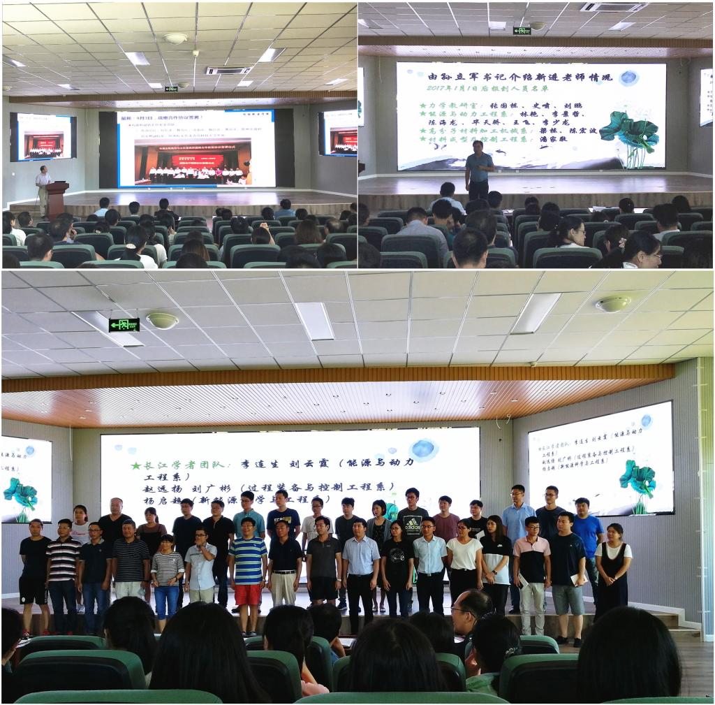 在D3-530会议室召开新学期全体教职工大会,院长何燕、党总支书记孙立军、副院长郭建章、张斌、杨化林、张卫锋、王伟及威廉希尔官网