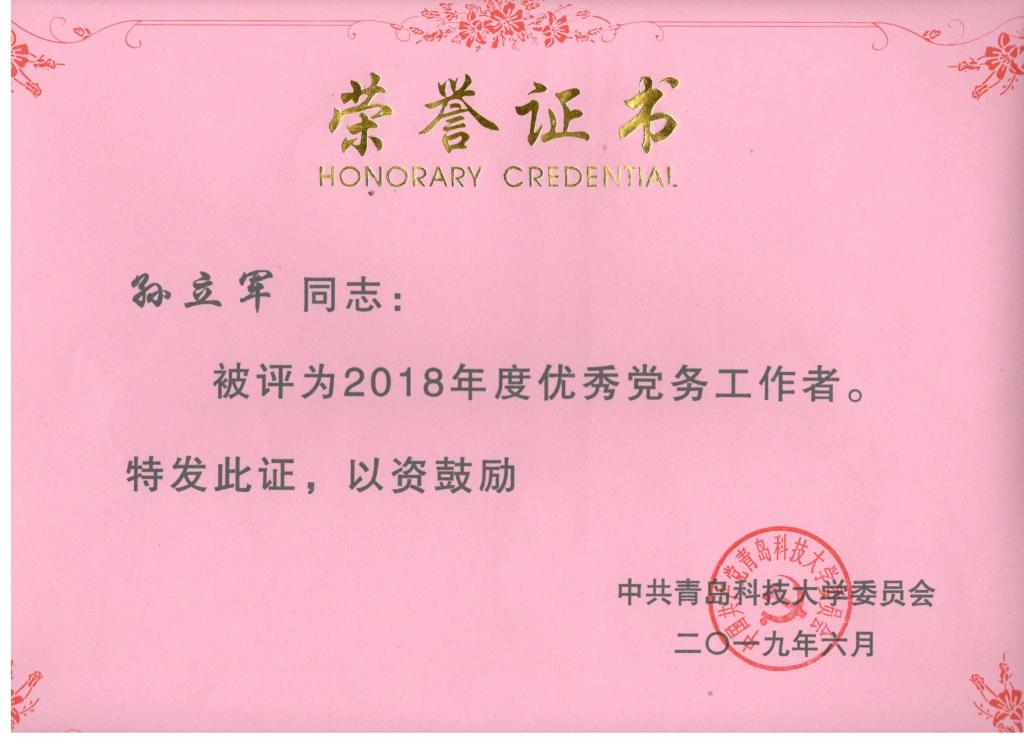 近日,学校对2018年度青岛科技大学“红旗”基层党组织、“五好”示范先进党支部、优秀共产党员、优秀党务工作者进行表彰,威廉希尔官网