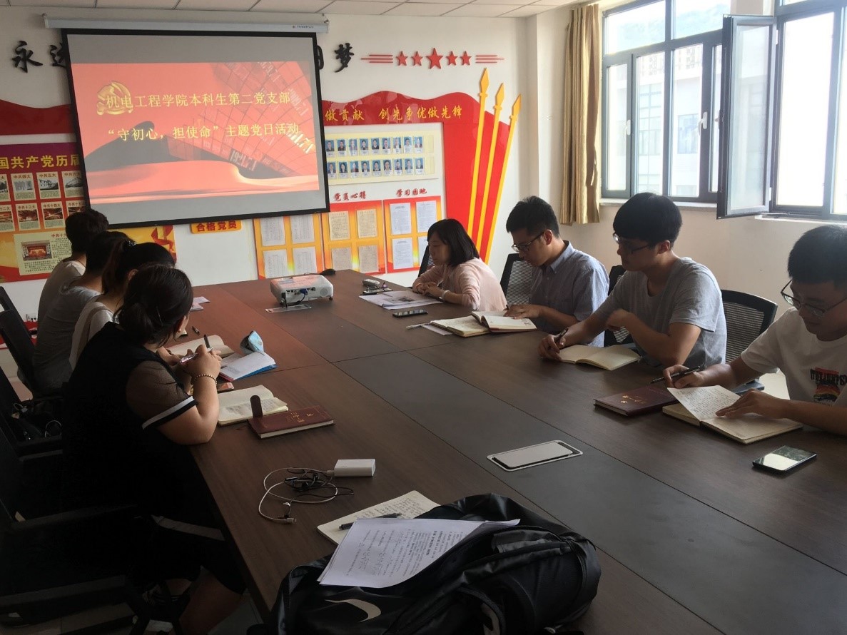 党员们陆续发言,其中张玉旗同志说:“守初心,担使命不是说说就能做到的,我们要找到我们的初心在哪,怎么去守是重要问题”。李飞宇同志提出强调大学生要有活力,要敢于迎接挑战,把学习放在首位,坚定自己的理想信念。辅导员王娟娟同志提出在党的98岁生日这个重要的日子,我们党支部开展“守初心,担使命”主题党日活动是具有重要意义的,她说“无论走多远,都不能忘记来时的路”。