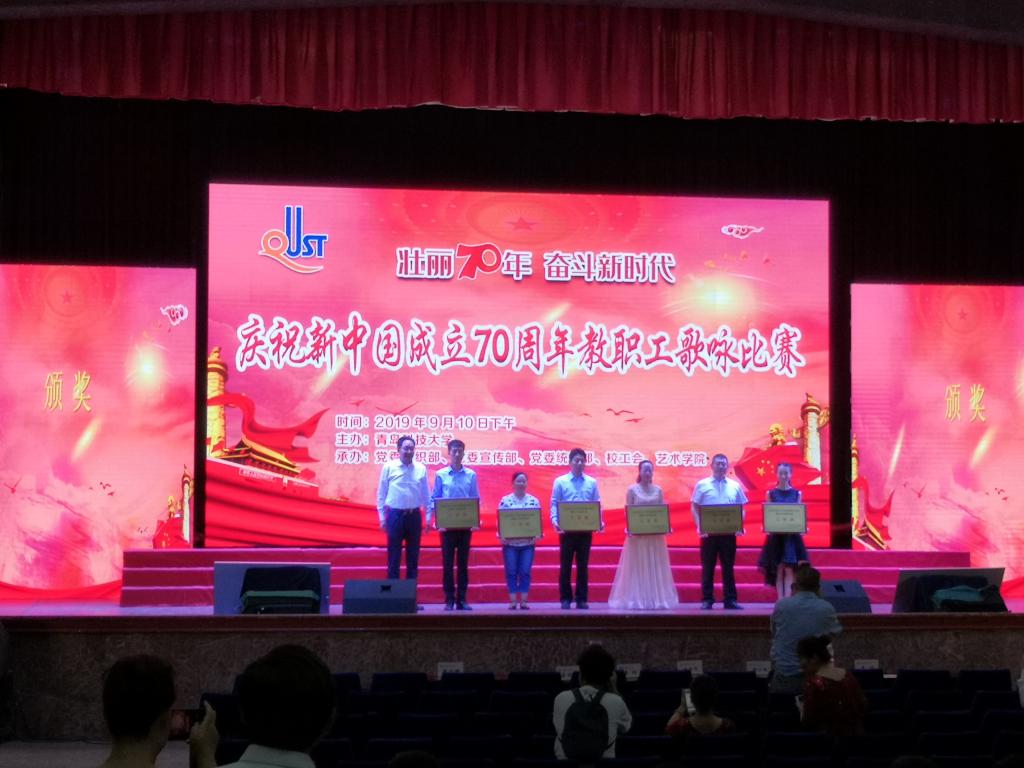 在学校庆祝新中国成立70周年教职工歌咏比赛中荣获三等奖。比赛经过初赛选拔,共有11支队伍进入决赛。