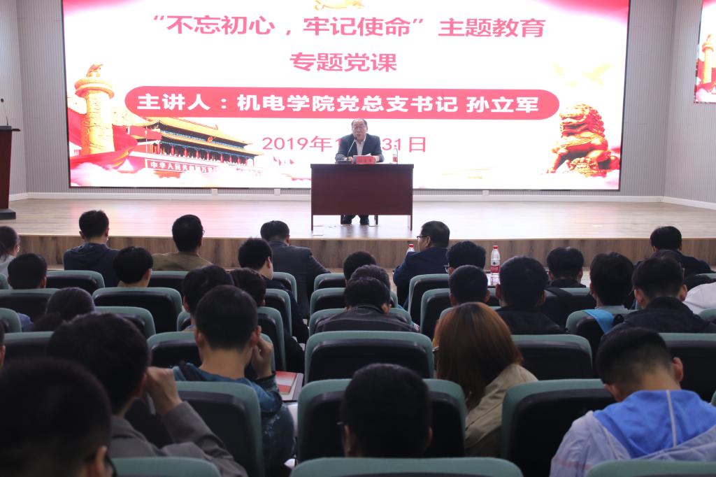 全体学生党员上了题为《践行党的宗旨,做党和人民满意的好党员、好干部》的“不忘初心、牢记使命”主题教育专题党课。校纪委史勤芳出席了党课,威廉希尔官网