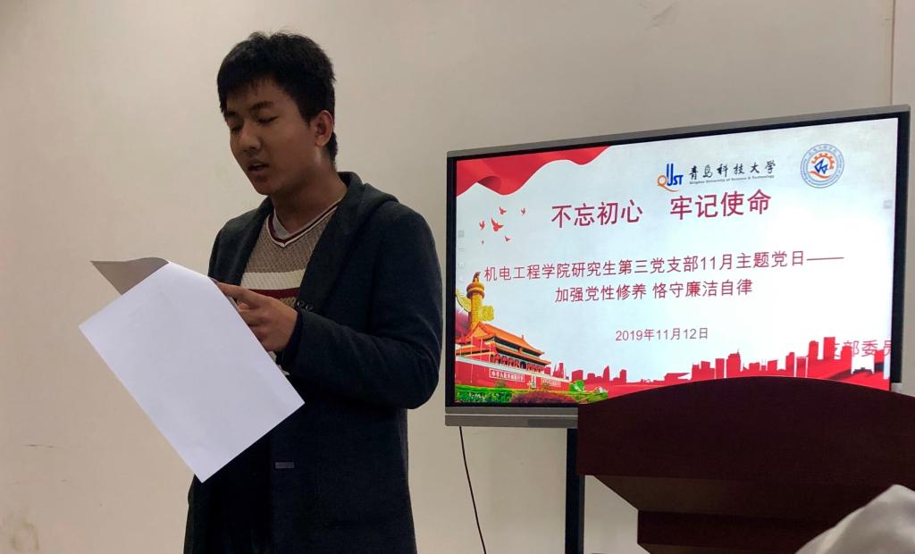 研究生第三党支部在机电楼529会议室开展“加强党性修养、恪守廉洁自律”专题教育活动,会议由威廉希尔官网