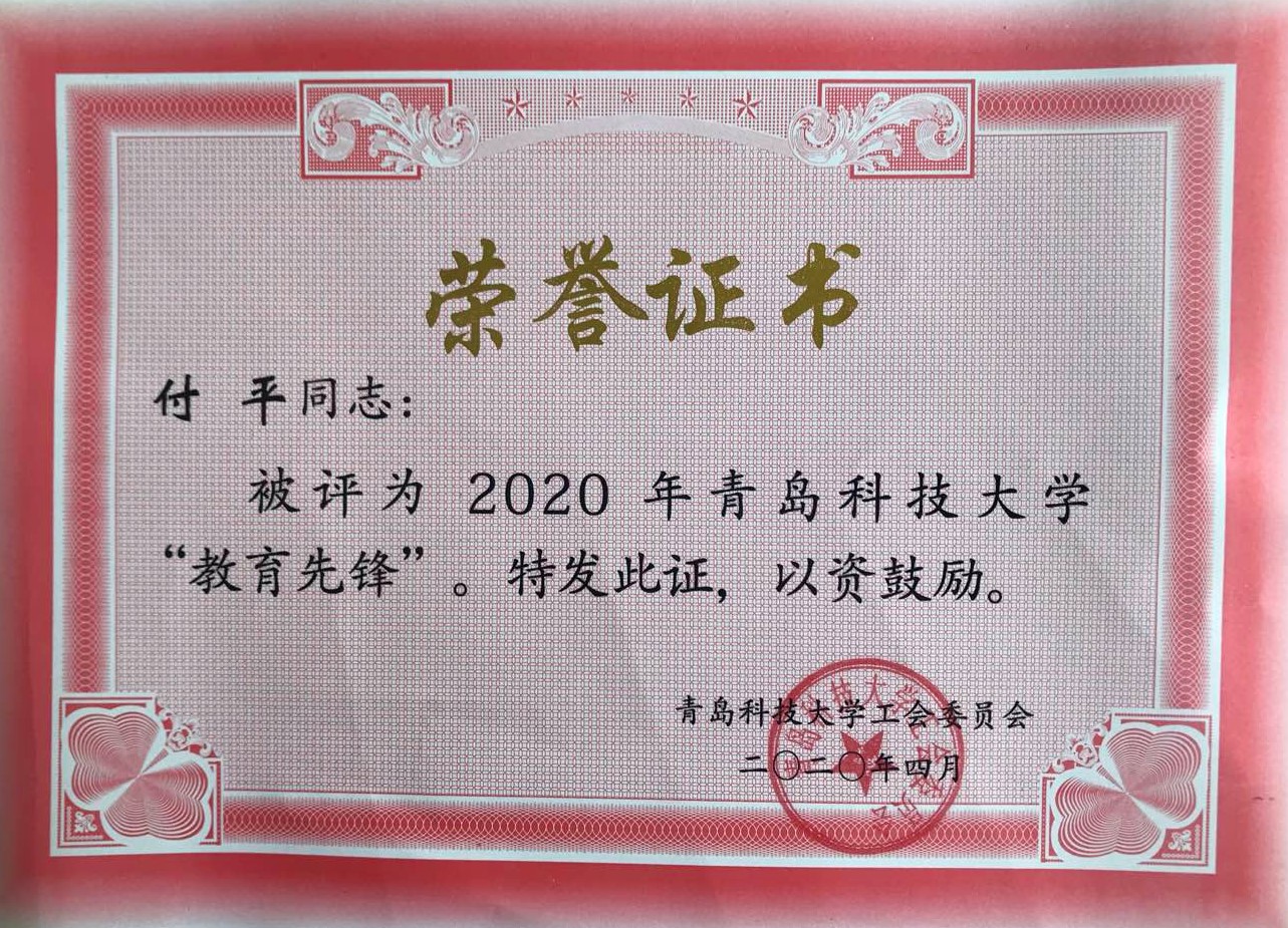 近日,在青岛科技大学工会委员会公布的《关于表彰2020年青岛科技大学“教育先锋号”“教育先锋”的决定》中,我院机械工程及自动化系荣获2020年“教育先锋号”,付平老师荣获2020年“教育先锋”。