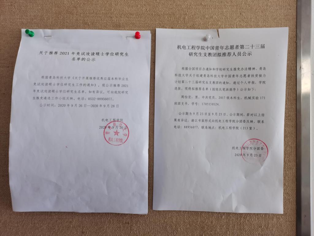 学生工作公示栏进行了为期3天的公示,公示期内无异议。