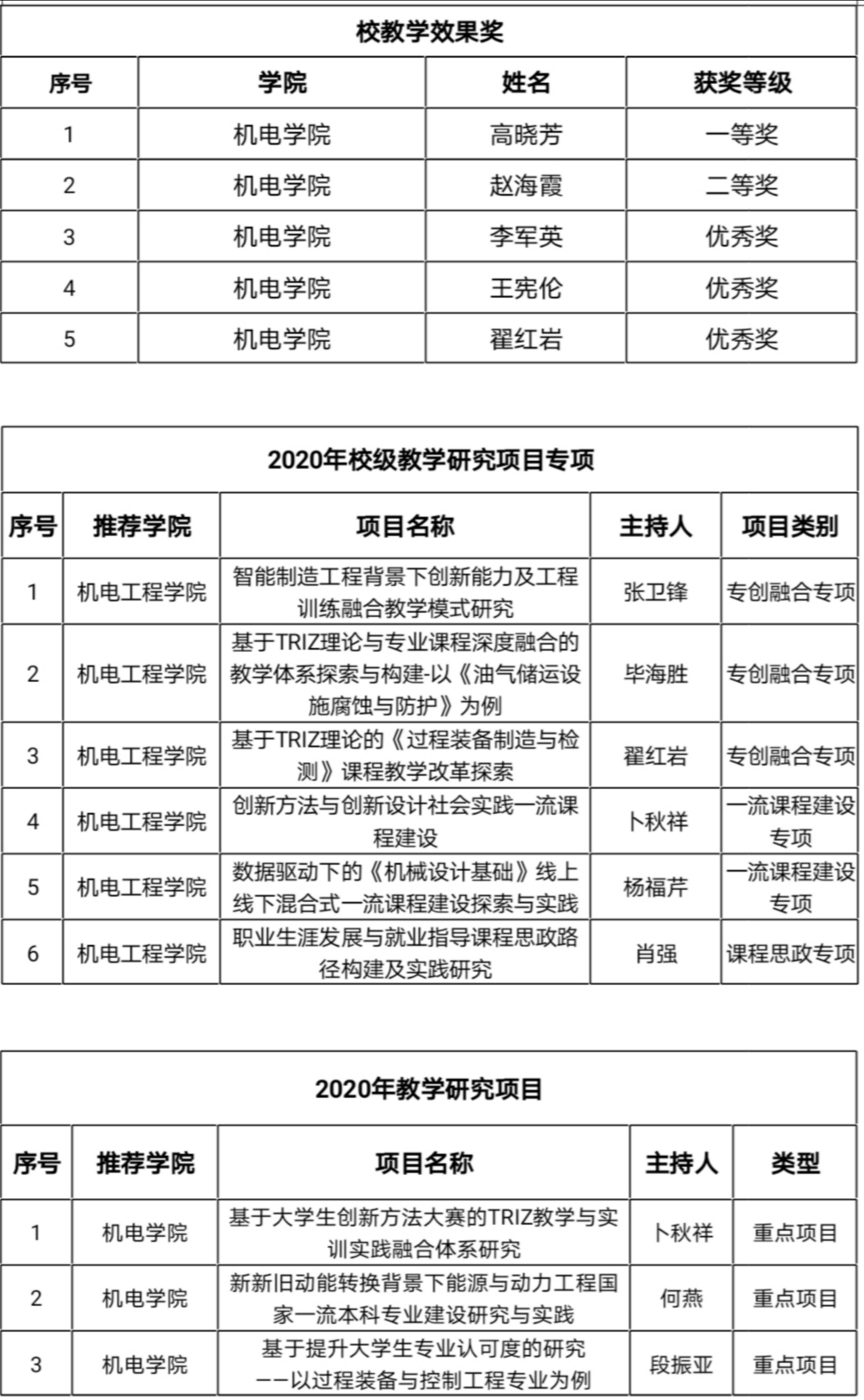 1名教师获校课程思政教学名师称号,1个教学团队获校课程思政优秀教学团队,13个项目获校教改立项,6个项目获校教改专项立项,7部教材获校新形态教材建设立项资助,5名教师获校教学效果奖。