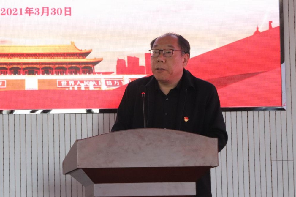 党委书记孙立军作动员讲话,指出,学习党史要提高政治站位,持续增强理论武装的政治自觉,做党史学习教育的先行者,各党支部和广大师生党员要重视历史、学习历史、研究历史、借鉴历史,上好学习党史这堂必修课,切实把党的历史学习好、总结好,把党的成功经验传承好、发展好;学习党史要突出学史明理,始终掌握事业发展的历史主动,做优良传统的传承者,各党支部和广大师生党员要把明理作为增信、崇德、力行的前提,从党的辉煌成就、艰辛历程、历史经验、优良传统中深刻领悟中国共产党为什么能、马克思主义为什么行、中国特色社会主义为什么好等道理,弄清楚其中的历史逻辑、理论逻辑、实践逻辑;学习党史要发扬革命精神,始终保持艰苦奋斗的昂扬精神,做干事创业的奋斗者,各党支部和广大师生党员要把抓好党史学习教育和推进重点工作紧密结合起来,全盘谋划、统筹兼顾、一体推进,力戒形式主义、官僚主义,防止出现学习和工作“两张皮”。
