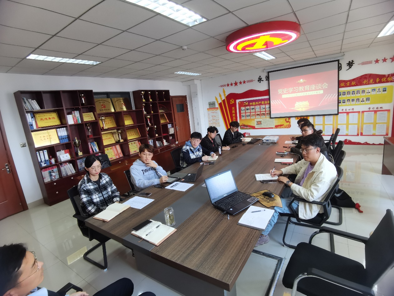 在党建活动室(505)召开党史学习教育专题座谈会,党委副书记肖强、学生会大三全体成员参会,会议由学生会指导老师孙坤岩主持。