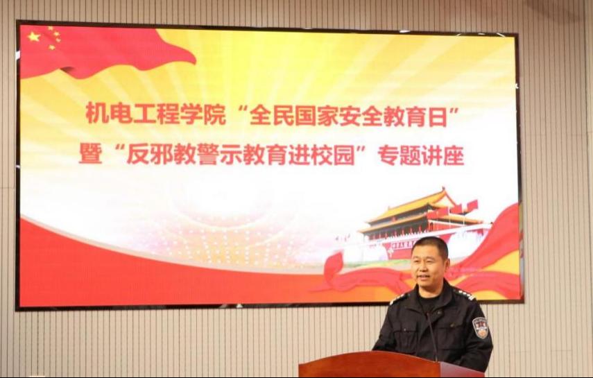 在D3楼530会议室举行全民国家安全教育日主题教育暨反邪教警示教育进校园专题讲座。青岛市崂山区公安局反恐大队队长辛华忠、学校保卫处副处长严增兴、威廉希尔官网