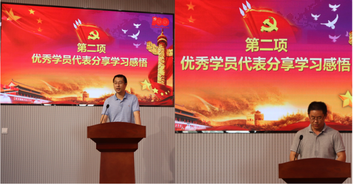 党委书记孙立军讲授党史学习教育专题党课,机械工程及自动化系党支部书记曹同坤、能源与动力工程系党支部书记张晓光分别就读书班期间自己的所学、所思、所想交流了自己的学习感悟。