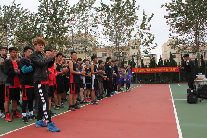 分团委曲智强老师,王娟娟老师致开幕词。在老师的精彩演讲中包含着对本次比赛的期待和祝福,同时也宣布了本次球赛的宗旨:友谊第一,比赛第二。随后,为保证赛事的公平`公正`公开性,裁判代表`运动员代表分别进行了宣誓,表示对此次比赛认真负责的态度,最后由辅导员王娟娟老师讲话,给篮球队员鼓励与注意安全的提醒。比赛采取分组淘汰制,分成四组,选出参加更高一级的比赛队伍。此次篮球赛比赛规则按照中国篮协近年制定的规则执行,保证比赛的公平性。比赛前队员们个个激情满怀,积极做好准备。比赛开始,队员迅速投入比赛,个个雄姿英发,在场上你争我夺,一轮轮地抢球,每个动作争锋相对,双方争夺异常激烈,最令人惊心动魄的是能源专业队与机械中韩专业队的对决,尽管机械中韩专业队疯狂的反扑,试图扭转局势,但是能源队依靠稳定的发挥,牢牢控制比赛节奏,一直保持领先,并取得了最终的胜利。比赛进行地如火如荼,队员们都情绪高涨,全身心地投入,发挥出了全部的本领。队员们较好的配合引起观众的阵阵喝彩。现场的气氛十分活跃,每场比赛都高潮迭起,令人心情澎湃。