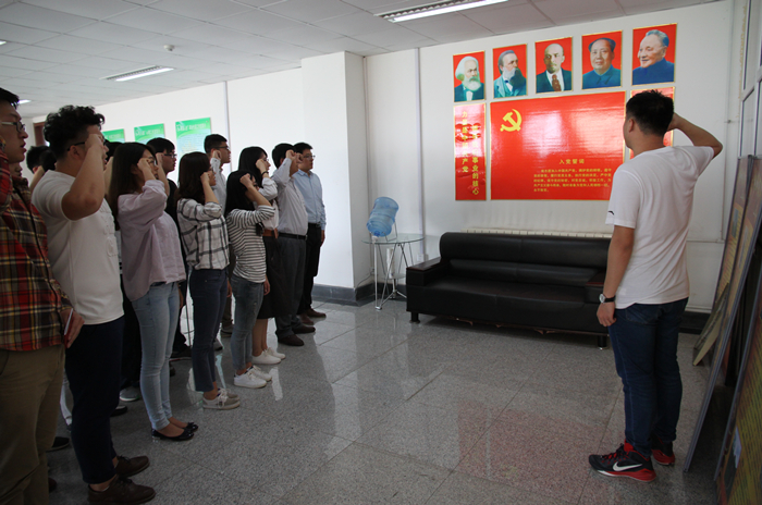 “两学一做”学习教育实施方案。最后,各支部书记带领全体党员通读了《中国共产党章程》,认真学习了准则和条例,通过学习号召广大学生党员树立远大理想、坚定理想信念,勇担时代重任,强化党员意识,以身作则,并加强专业学习,不断提高自身素质。希望全体党员能够对照党员标准严格要求自己,发挥党员的带头作用,从身边点滴小事学习,为做一名合格共产党员不断奋斗。会后,全体党员向党旗重温入党誓词,使大家明确党员身份,提升使命感、责任感和荣誉感。